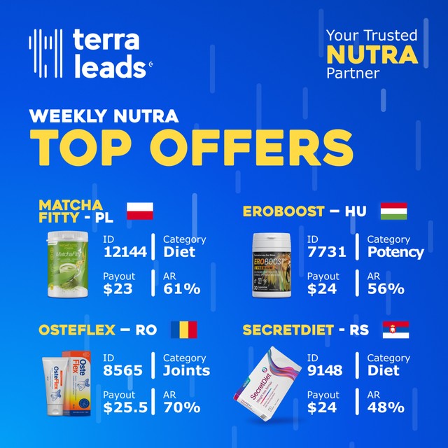 Пора и тебе запускать проекты с большим потенциалом. Лей трафик на топ-офферы недели и собирай свой крупный профит: